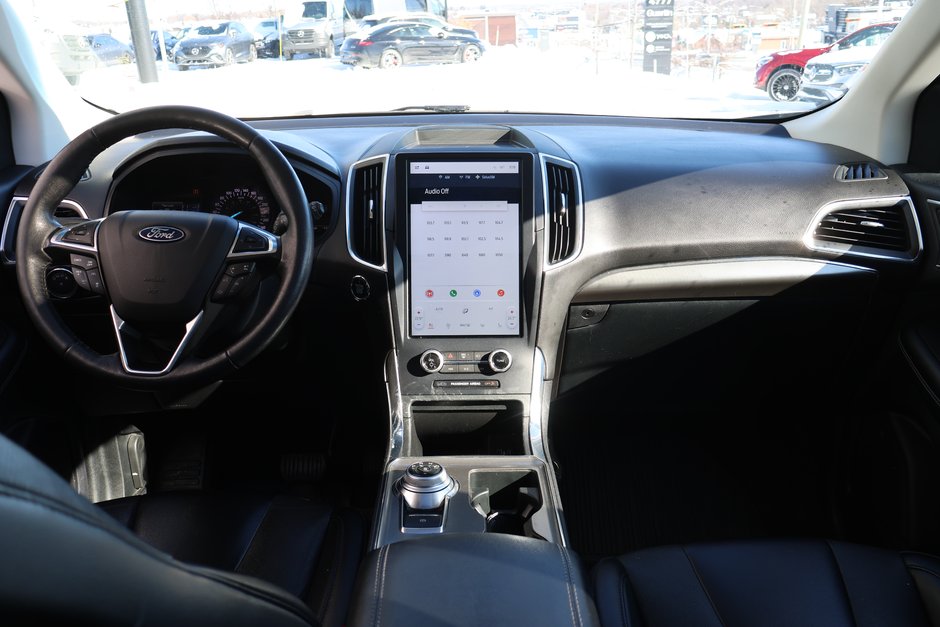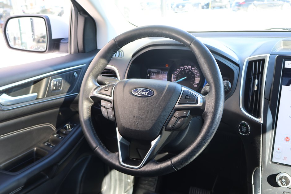 The 2022 Ford Edge Titanium AWD is a midsize SUV featuring a standard 250-hp 2.0L EcoBoost engine, 8-speed automatic transmission, and Intelligent All-Wheel Drive. It emphasizes luxury and technology, including standard 19-inch aluminum wheels, heated/ventilated leather seats, a 12-inch SYNC 4A touchscreen, and Ford Co-Pilot360 safety technology.