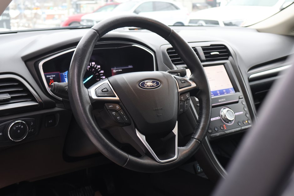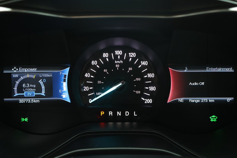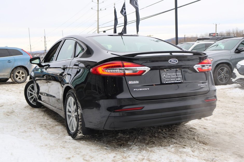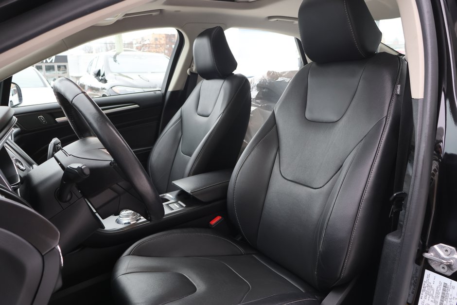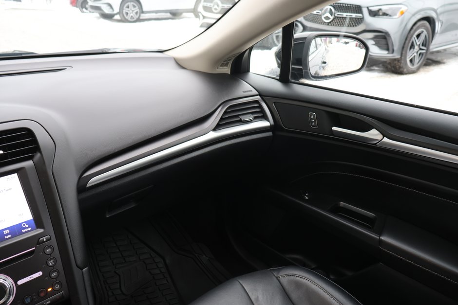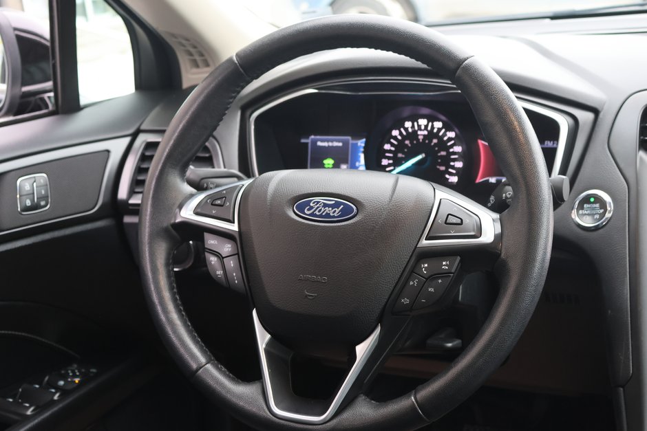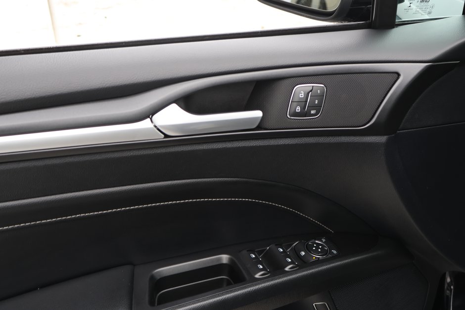 The 2020 Ford Fusion Titanium Energi is a top-trim plug-in hybrid (PHEV) sedan featuring a 2.0L Atkinson-cycle engine and a 9 kWh battery, producing a combined 188 horsepower. It offers roughly 25-35 km of electric range and a 43/41 city/hwy MPG rating. The Titanium model includes premium features like leather-trimmed heated/ventilated seats, a 12-speaker Sony audio system, and navigation.