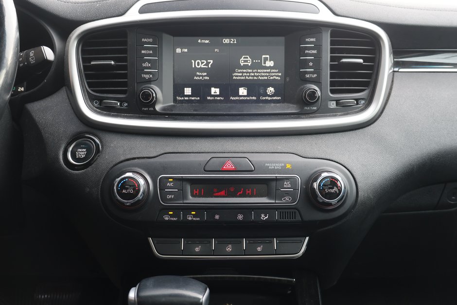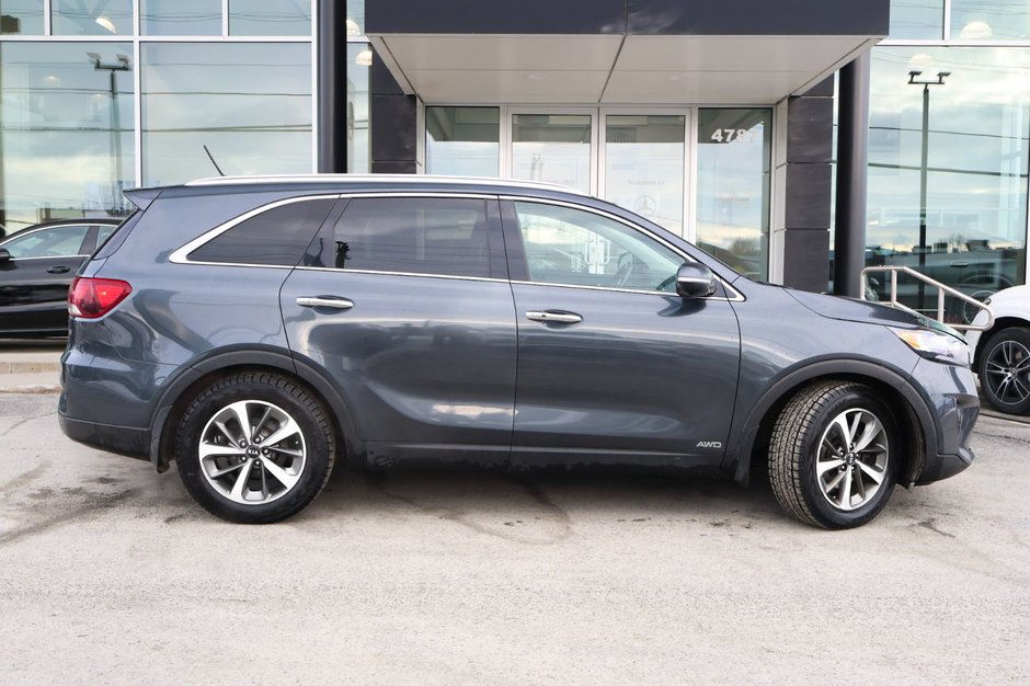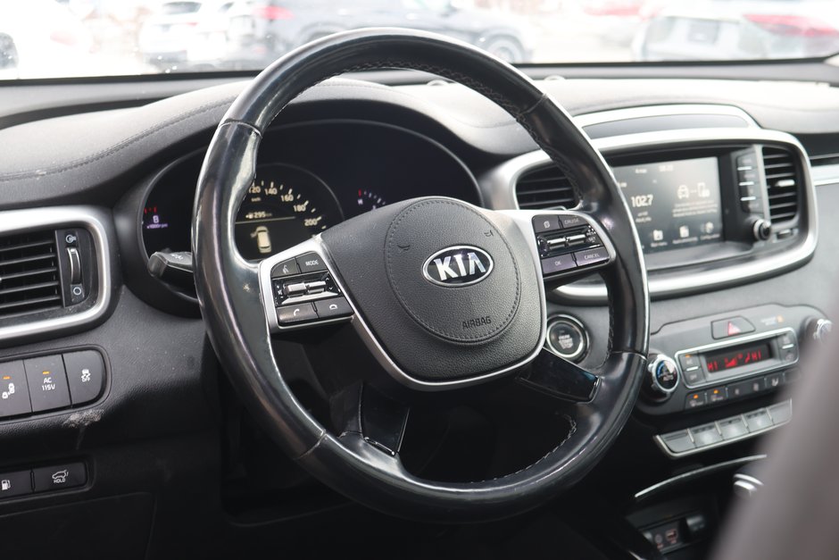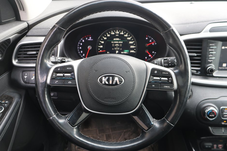 Le Kia Sorento EX V6 2020 est un VUS intermédiaire polyvalent, doté d'un moteur V6 de 3,3 L développant 290 ch et 252 lb-pi de couple, couplé à une transmission automatique à 8 rapports. Il offre une capacité de remorquage de 5 000 lb, la traction intégrale (TI) de série, une configuration à 7 passagers et des caractéristiques haut de gamme comme des sièges en cuir.