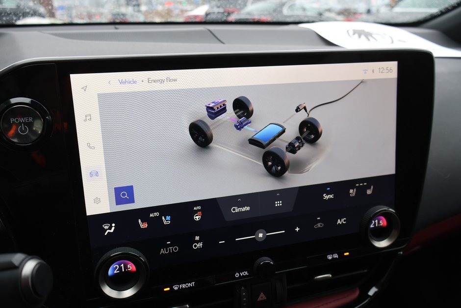 Recharge :Le NX 450h+ est doté d'un chargeur embarqué de 6,6 kW. Sur une borne de recharge de niveau 2 (240 V), une charge complète prend environ 2,5 heures. Il n'est pas compatible avec la recharge rapide de niveau 3 (DCFC).